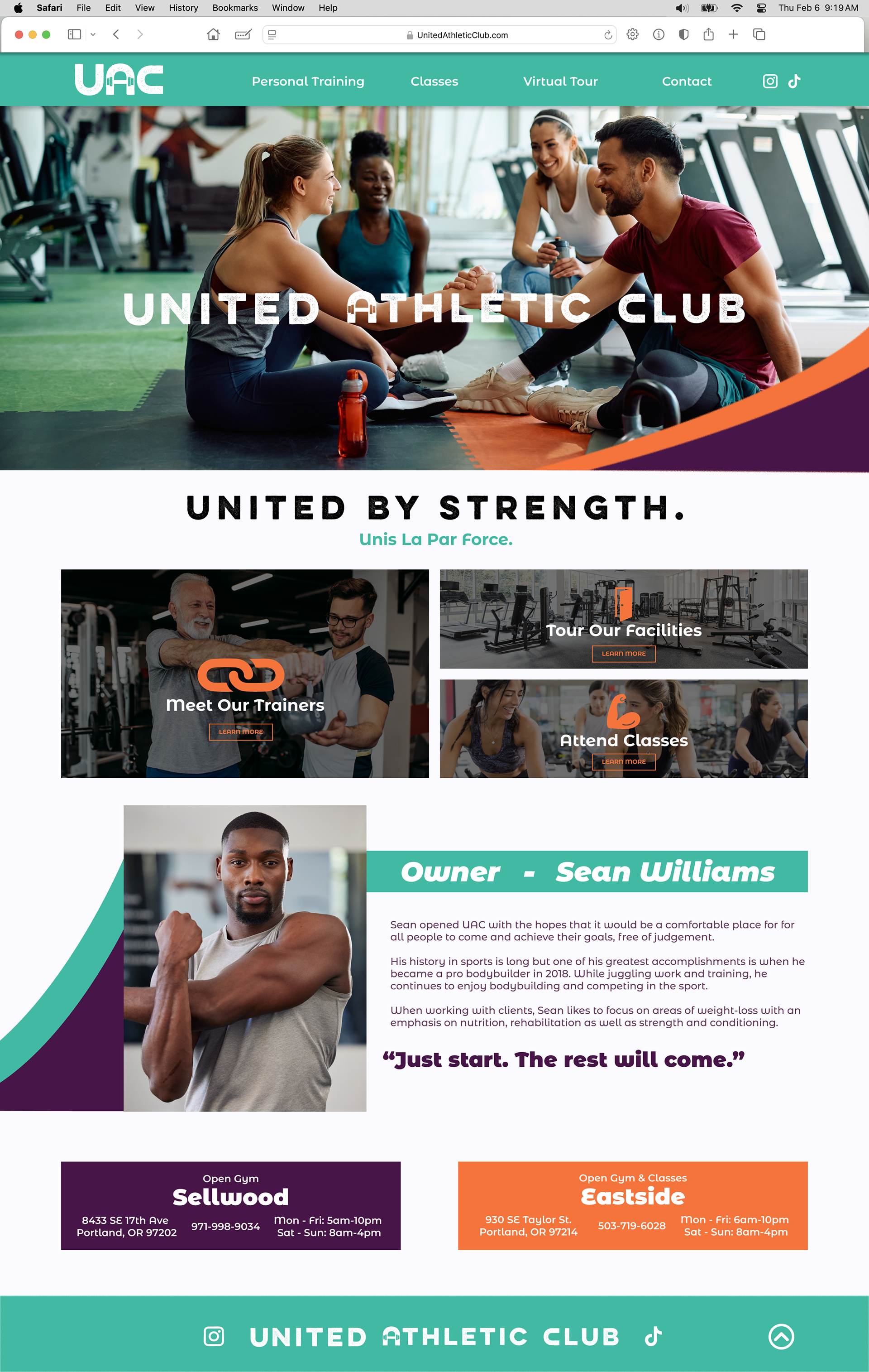 United Athletic Club is a local gym located in Portland Oregon. In this hypothetical rebrand, I wanted to focus more on the relationship found between trainer and trainee. This rebrand highlights their inclusiveness and welcome arms for any skill level at their two locations.